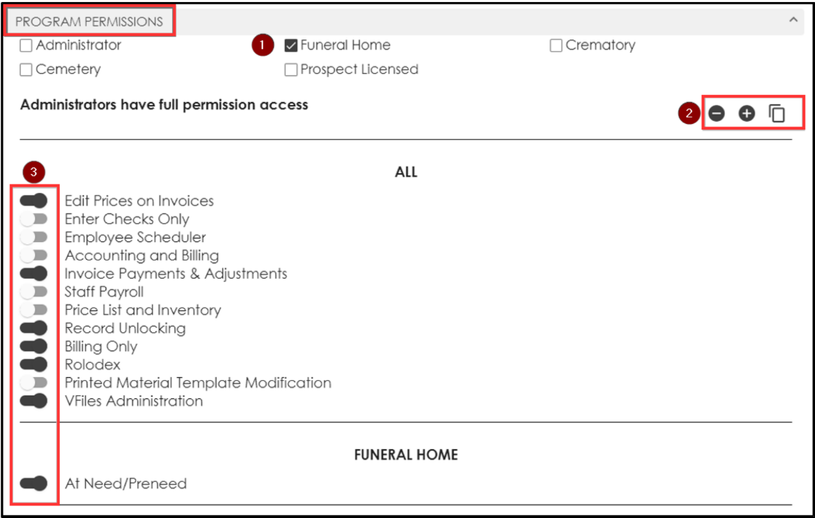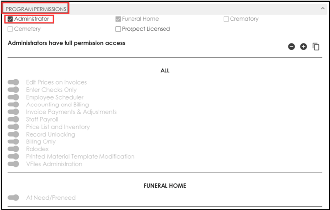 If the selected staff is an Administrator, just click the Administrator box and the user will have full permission throughout all programs.
