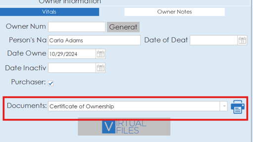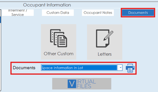 Documents such as the certificate of ownership and deed for the grave plot can also be printed from the documents drop down.