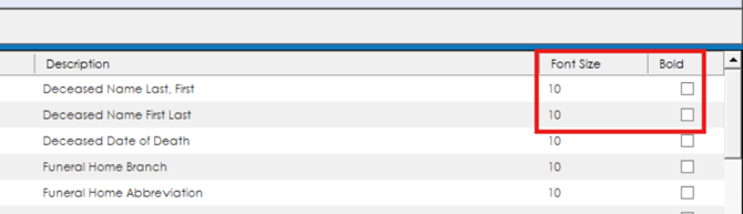Options are also available to control the font size that displays for that field and whether or not it should display bolded.