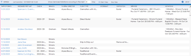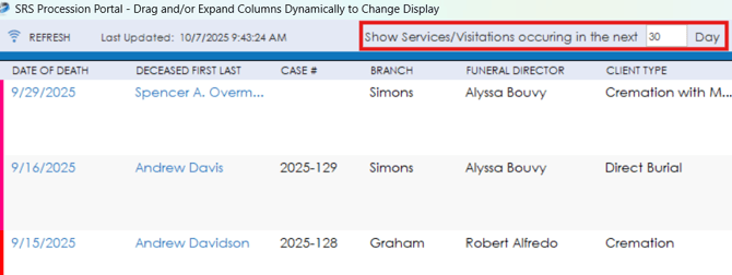 An option is also available to set what cases to display based on services or visitations occurring in a certain amount of days.