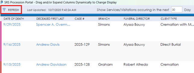 Along the top of the portal, a refresh button is available if newer changes to fields are not showing.