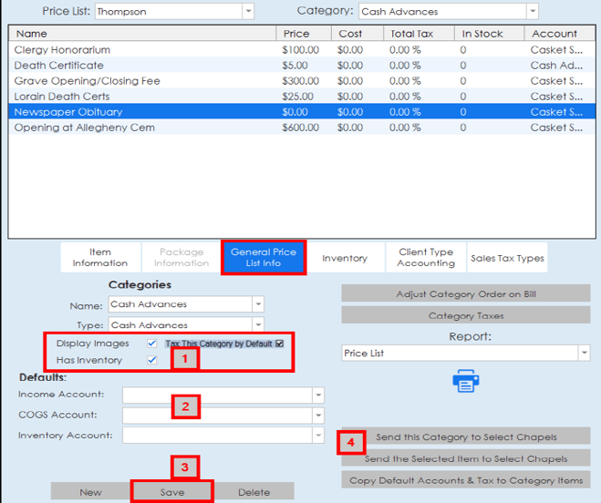 To edit the categories globally or push item changes to other branches/chapels, click the General Price List Info tab.