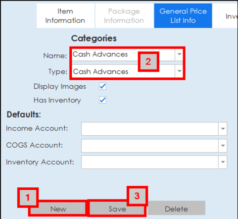 - If the category should be taxed as a default, check the Tax This Category by Default box. If the category has Inventory to track, check the Has Inventory box. The Display Images option is utilized for showcasing merchandise in the Profile program using Virtual Showroom.