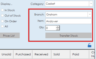 Stock for an item can also be transferred between locations using the transfer stock section on the right side.