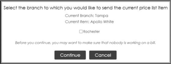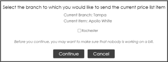 . This will bring up a small window to select what branches need to have this item with the same pricing and details.