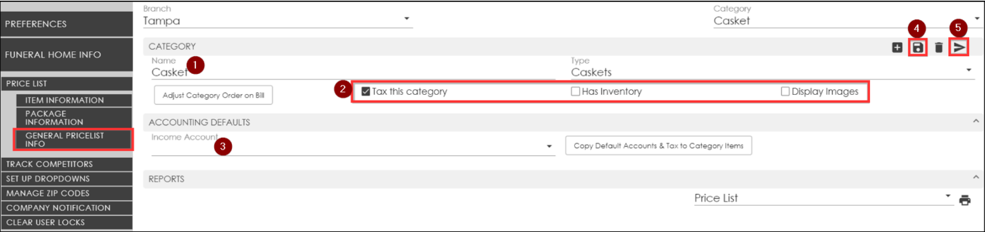 To edit the categories globally or push item changes to other branches, click the General Price List Info tab.