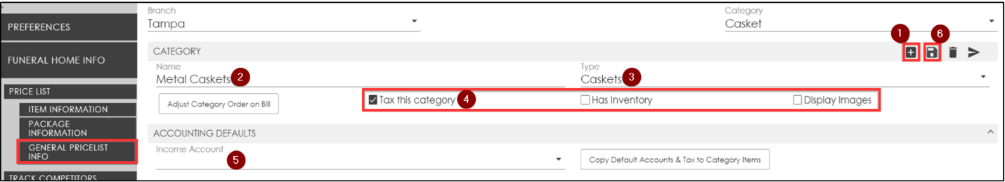 Select the Income Account for the category items funds to go into (if using the Accounting feature).