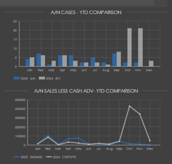 On the right side of the page, two graphs are available to show year to date comparisons for at-need cases and at-need sales.