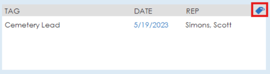 The tag section will allow you to add tags to the client to indicate what type of services they may be a lead for or any other type of info you may want to tag a client with. Tags can be added to the client by double clicking on the tag icon in the right corner.