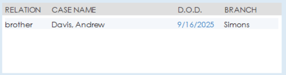 At the bottom of the summary page, a relations section is available that will display any relatives that are already in Procession as a case and have this lead associated as a family or friend.