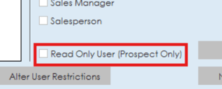 Below this area, an option is also available to toggle the Read Only User role, this is available only for Prospect and will allow a user to view information but not mane any changes.