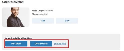 The video details page that you are taken to will have a couple options for you to download the video. An MP4 video file can be downloaded or a DVD ISO file can be downloaded if you would like to burn the video to a DVD yourself. Our burning help section provides some basic instructions for burning a DVD on Windows or Mac.