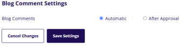 Blog comments can be toggled to post automatically or after approval via this section. Once you have changed the setting make sure to click the Save Settings button.