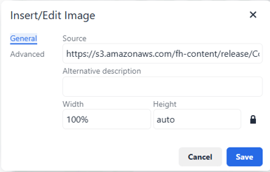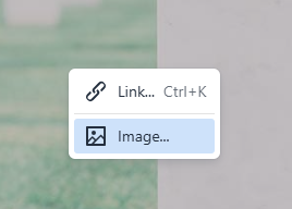 Clicking the "Image" option will open the image customization window where you can add a different image or change the sizing of the current image.