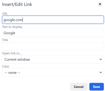 The link option will open the link window where you can add a url to link to when people click on the image.