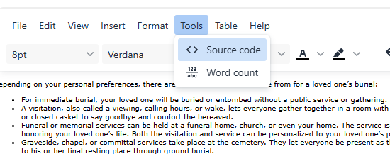 The source code window will allow you to add html code to the page directly. This is particularly useful if you need to embed any widgets to a page using html code.