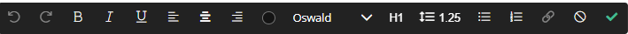The text box has a text editing tool bar available with various text editing options. Text can be bolded, italicized, underlined and aligned. There are also options for letter spacing, color, linking options and formatting options for creating lists.