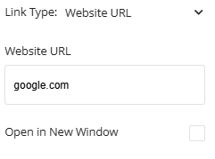 The website URL link type is where you can add an external website URL to link out to a different website. You can enter the website’s URL in the website URL section.