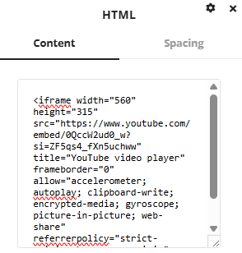 Clicking the pencil icon will take you to the HTML content window where you can apply the HTML code you wish to add. Paste the code into this section and you will see the embedded code display it's content in the HTML box.