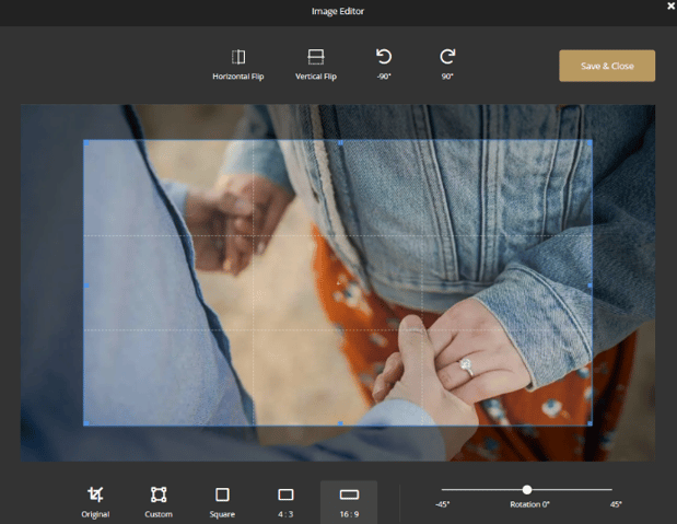 Clicking the edit button will open the image editor where you will be able to crop the image or edit a variety of other things like aspect ratio and flipping or rotating the image.