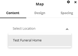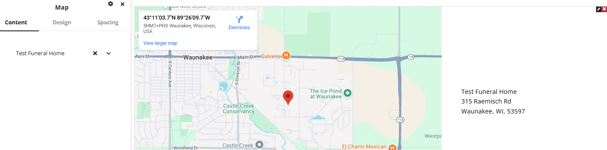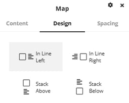 The design tab and spacing tab also have a few options available to customize the layout of the map and address information along with options to customize the spacing of the section.