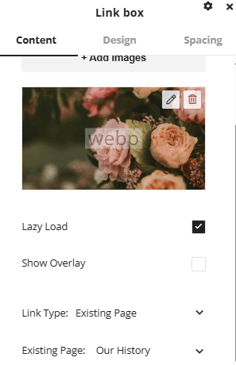 The link box element will add a section to the page that allows for other elements to be added within it and all link out to the same URL link. The box acts similarly to a row in the sense that different elements can all be added within the section, the main function though is that a link can be set in the settings window of the link box element and all items within the box will have that link applied if a user clicks anywhere within the box.