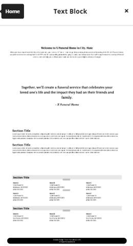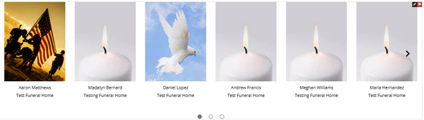 The obituaries element adds an obituary slider to the page.