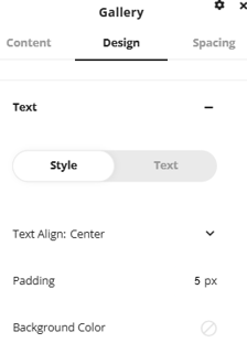 Any text that is applied over the images via the label and description options can be customized under the text area. Alignment, padding and color can be changed along with font and letter spacing.