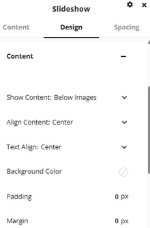 Under the design tab there is a variety of options for customizing the format and overall styling of the slider.