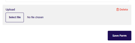 This field will add a file upload option to the form where a user can upload a file via the select file button.