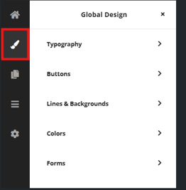 The global typography section of the website builder is where you can make changes to the global design styles across a variety of components on the website.