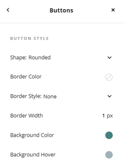 The buttons section is where you can make changes to the button stylings on the website. The button style section gives options to customize the shape, color, style, size and color of buttons across the website.