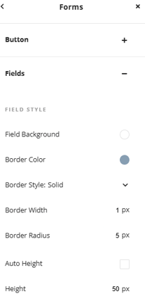 The forms section is where you can make changes to the default design options for various aspects of the website forms.