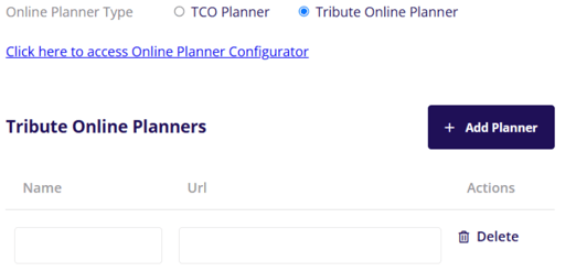 This is the online planner that is connected to our TMS management software. This product is not native to the website and it’s configuration is handled through the TMS planner configuration. The section here on the website allows for the planner URL to be added to link the planner on the website. All other changes to this planner happens outside of the website. All that is required to set up the planner is the name of the planner and the URL to the planner.