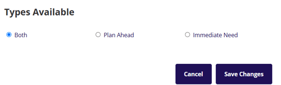 The section at the bottom that says types available is where you can set if you want the option for plan ahead and immediate deed to both show or only one of those options to show.