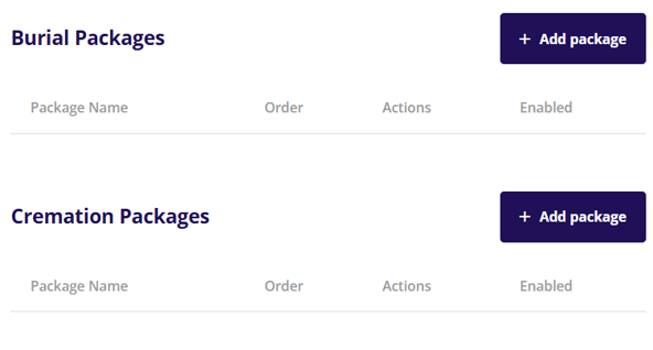 Beneath the description you will see a section for burial package options and cremation packages options.