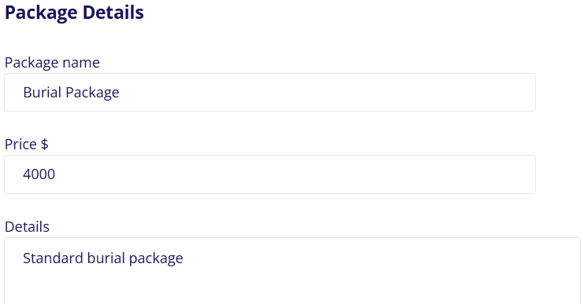At the top of the package details page you can set the name of the package, price of the package and any details you want to add that will describe the package.