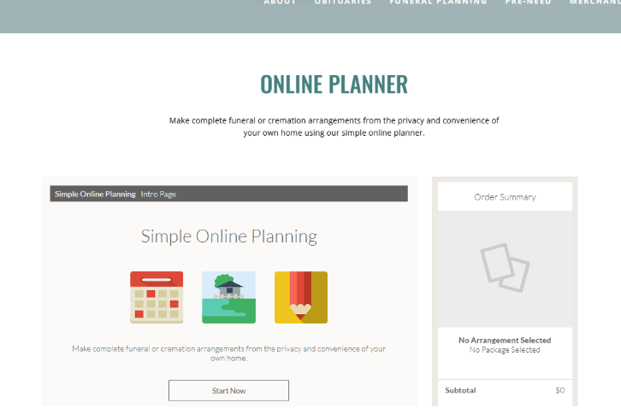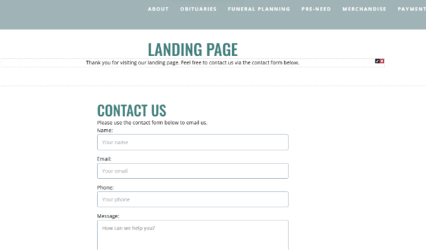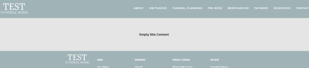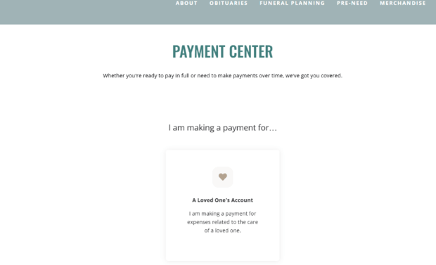 A payments page will add a payment center page connected to your Tribute Pay account. The credit card processing for this payment center works through Tribute Pay so a Tribute Pay account is required to use this payments page. Adding this page will add an editable content area on the top half of the page and a payment center section to the bottom half of the page that is not editable within the website builder. The payment center allows users to navigate through the various prompts to select a loved one, fill out basic information and proceed with a payment option.