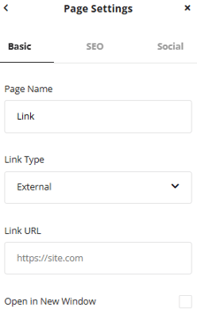 A link page will add a page to the menu that will link out a certain url. This is not an actual page with editable content hosted on the website, it is simple a way to add a link to a website or phone number to the navigation menu. Once a link page is added, the url that the page links to can be set in the page settings. The link type can be set to external for a url on a different website, internal will let you link to a page on your website, anchor will allow you to link to an anchor point of a page that is on your website and click-to-call will let you add a phone number that is linked to dial once the link is clicked.