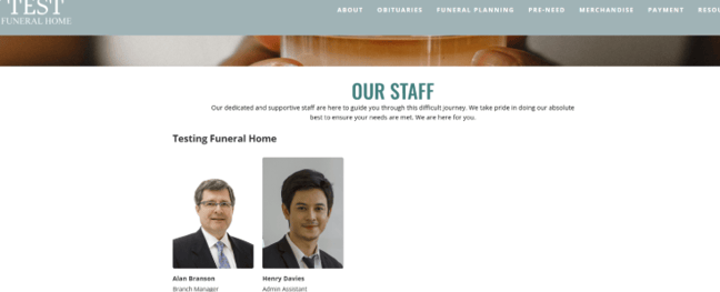 A staff page, similar to a blog page, will add an editable content area on the top half of the page and a staffing section to the bottom half of the page that is not editable from within the website builder. The staff section is fed content from the staff tool page on the admin dashboard. To make any changes to the staff that are displaying or any of the content within the staff profiles, you will need to go to the staff tools page and make the changes to the staff member’s profile in there.