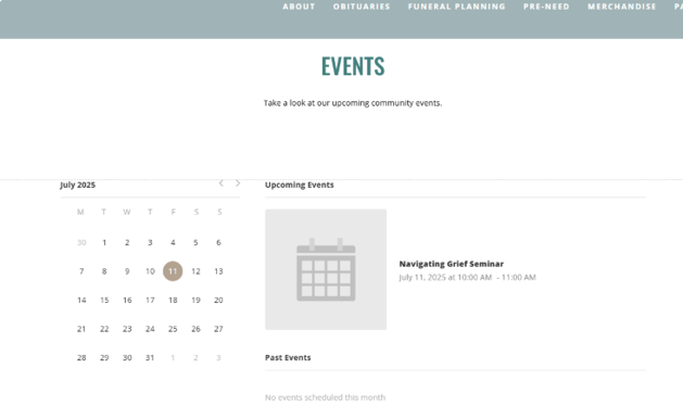 A staff page, similar to the blog and staff pages, will add an editable content area on the top half of the page and an events section to the bottom half of the page that is not editable from within the website builder. The events section is fed content from the events tool page on the admin dashboard. To make any changes to the events that are displaying or any of the content within the event details, you will need to go to the events tools page and make the changes to the events in there.