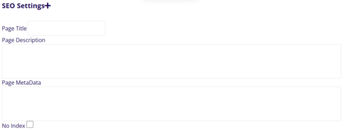 The SEO Settings section can be viewed by clicking the + icon beside the title. In this section you can add or edit page meta data for search engines. Page Title, Page Description and Page MetaData are the available options to be edited.