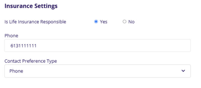 This section allows you to mark a staff member as being responsible for Life Insurance or not. You can enter a phone number for the staff member and their preferred contact type.