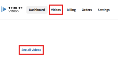 The Tribute Video dashboard gives you visibility on recent videos and recent orders.