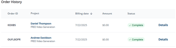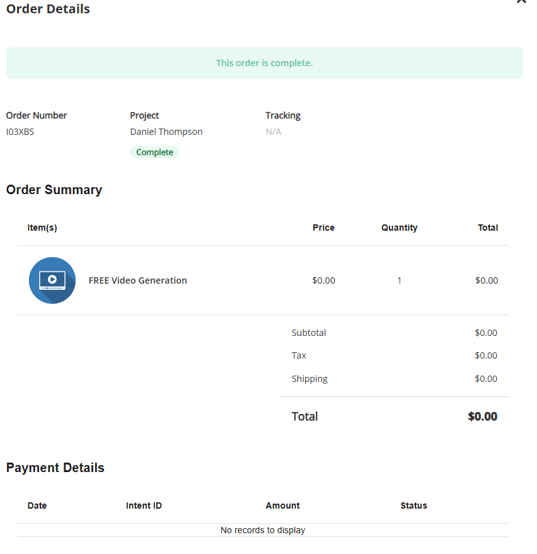 Under recent orders you will see a list of the most recent orders for your video projects. This will show if a video was rendered or if an order was placed for a thumb drive or dvd copy of a video by a customer.