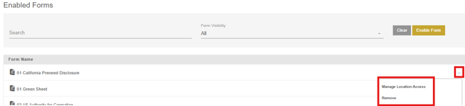 Forms can be enabled for different locations or removed from the forms list via the 3 dots on the right side in the form list view.