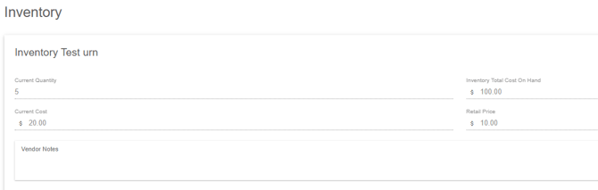 On the manage page for the item, you will see various pieces of information such as the quantity, cost, retail price and total inventory cost.