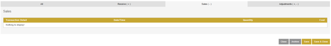 Under the sales tab, any sales for the item will be listed showing the date and quantity sold.