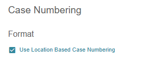 **Case numbering can be set to be the same across all locations in the admin settings under the case numbering tab. In this tab an option is available to enable location based case numbering which will utilize the case numbering format set up on the locations individually. If you wish to have a system wide case numbering format, simply go to this area and make sure this option is not checked off.