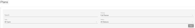 The plans page will list out all plans from the Online Planner. The submissions in the list will display the email of the user, the planner used, who plans are for, last update, type of plan and status of the plan. Submissions can be searched at the top of the page and filtered by planner used, type of plan and status of submission.